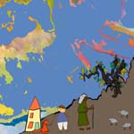 It can be printed in black and white but will be more pleasing in colour. The pdf file is designed to be printed in booklet form so that the longer text page (to be read out to a child) opens facing the relevant picture and the very short version of the story. If your printer does not support booklet printing, try to print the file in such a way that the arrangement is the same: long text page on the left and picture + simple text on the right.